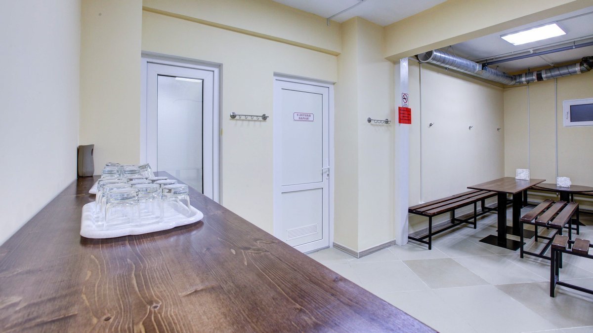 В перерывах между посещениями парилки наших гостей ждет комната отдыха. Мы постарались создать здесь комфортный, стильный интерьер из максимально натуральных, экологичных материалов, выбрать мебель, которая будет одновременно удобной и красивой. Надеемся, что он придется вам по душе!